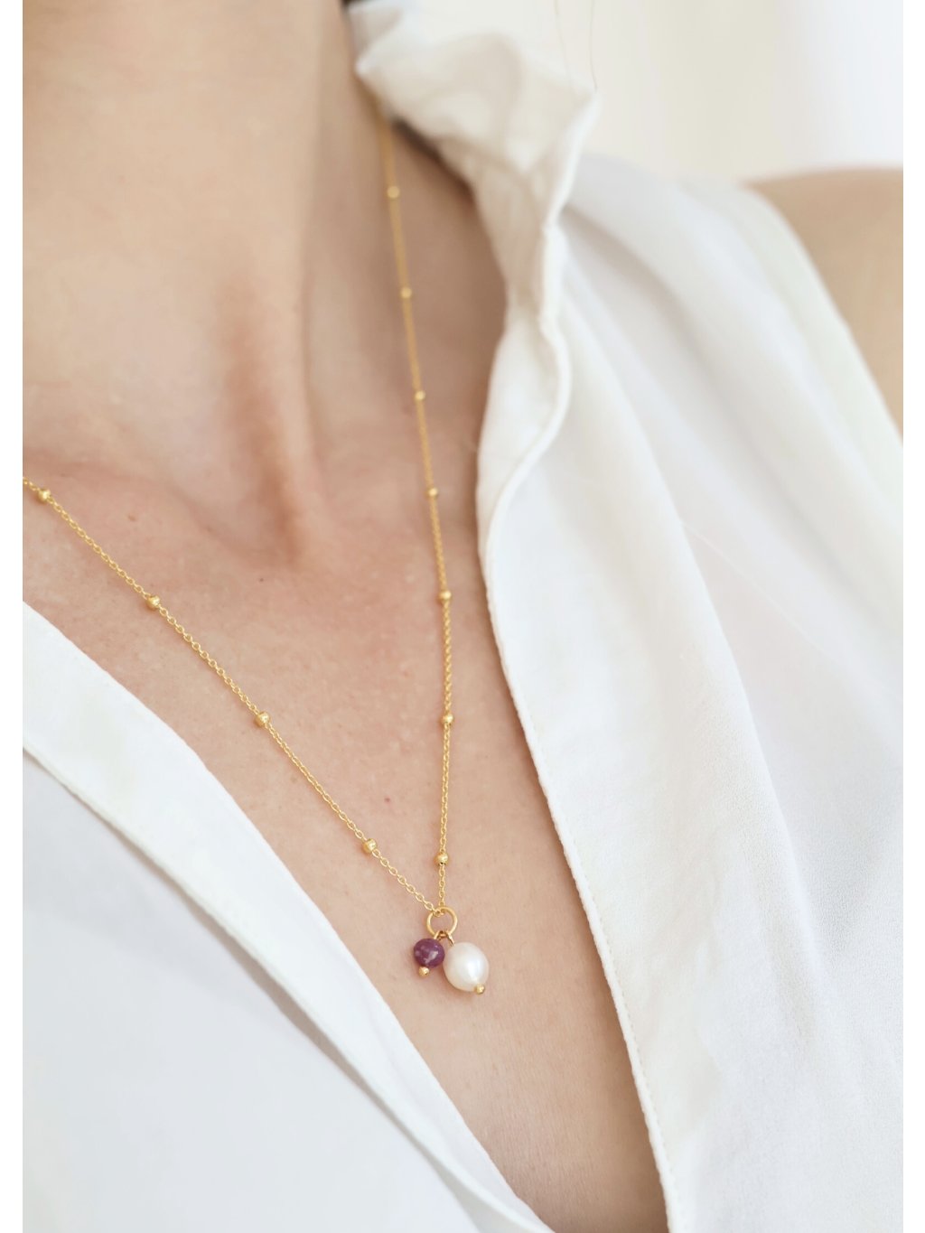 Tento nadčasový kousek, vyrobený ze stříbra AG 925 a jemně zlacený 24K žlutým, zdobí pravá sladkovodní perla a kámen měsíce narození, který vám bude připomínat lásku k sobě samé a vaši vnitřní sílu.