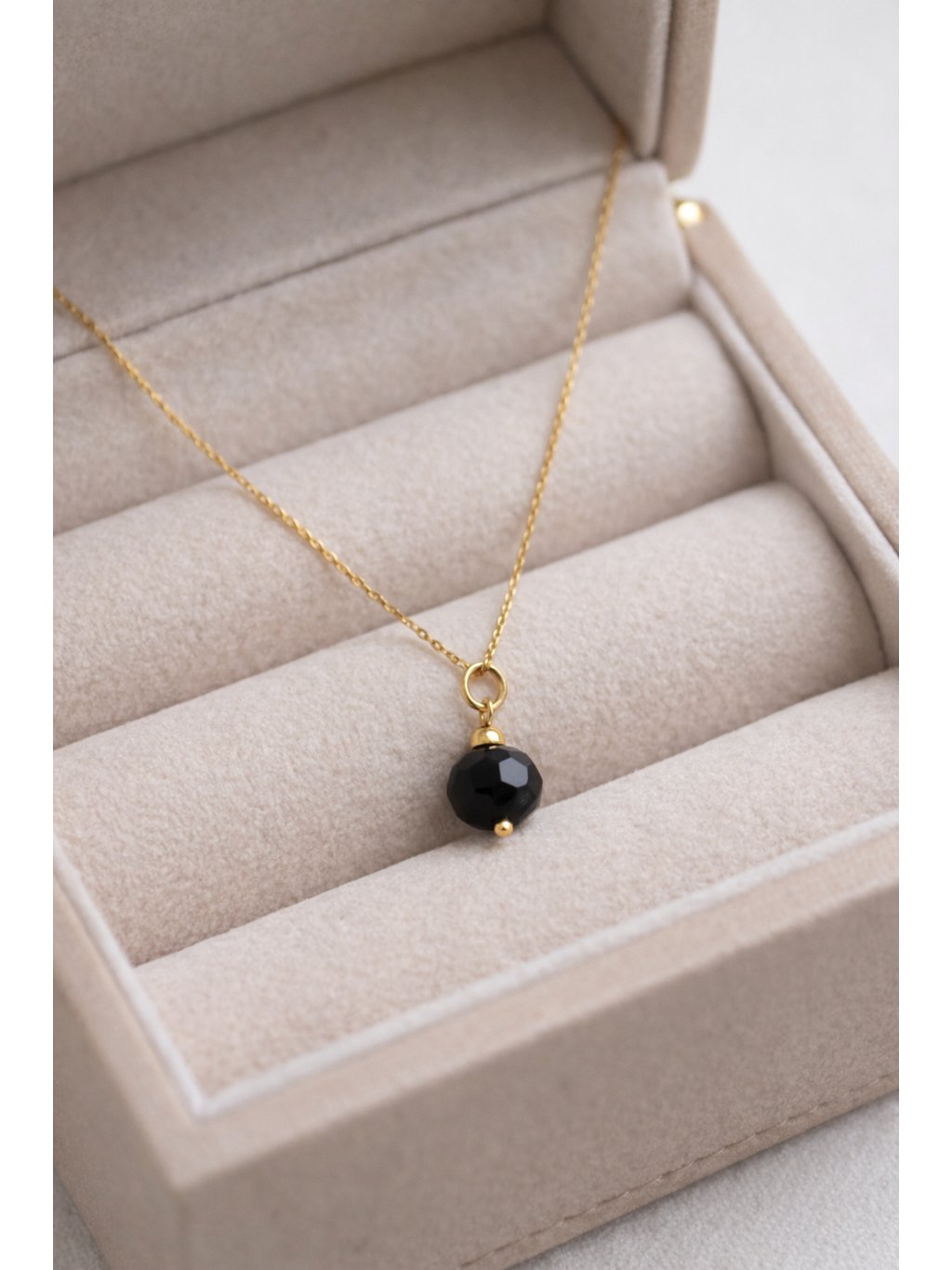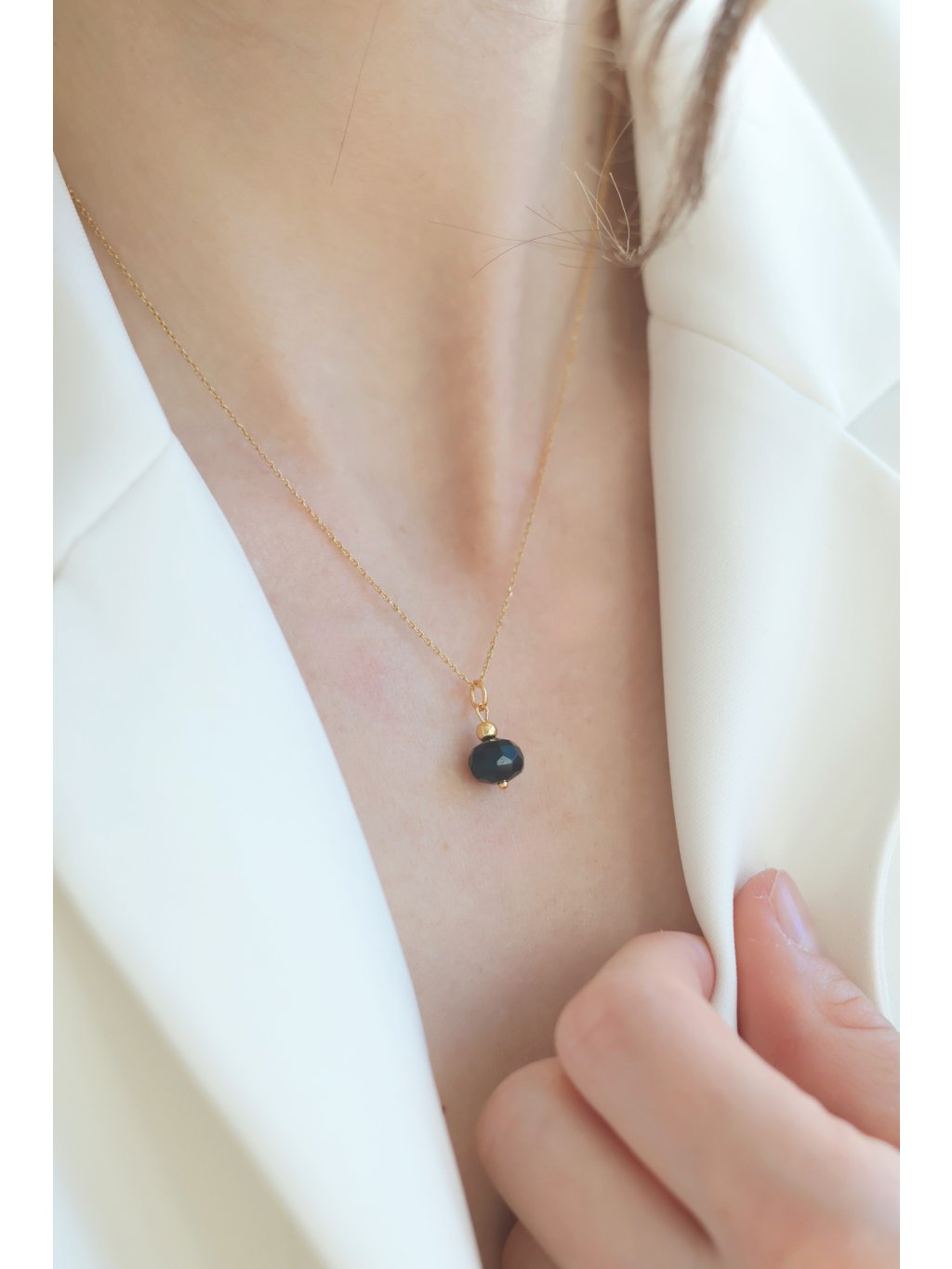 Náhrdelník Onyx spojuje minimalistický styl s luxusním vzhledem díky přírodnímu minerálu onyx. Nadčasový šperk ze stříbra AG 925, jemně zlacený 24K žlutým zlatem, je ideální pro vrstvení s dalšími šperky.