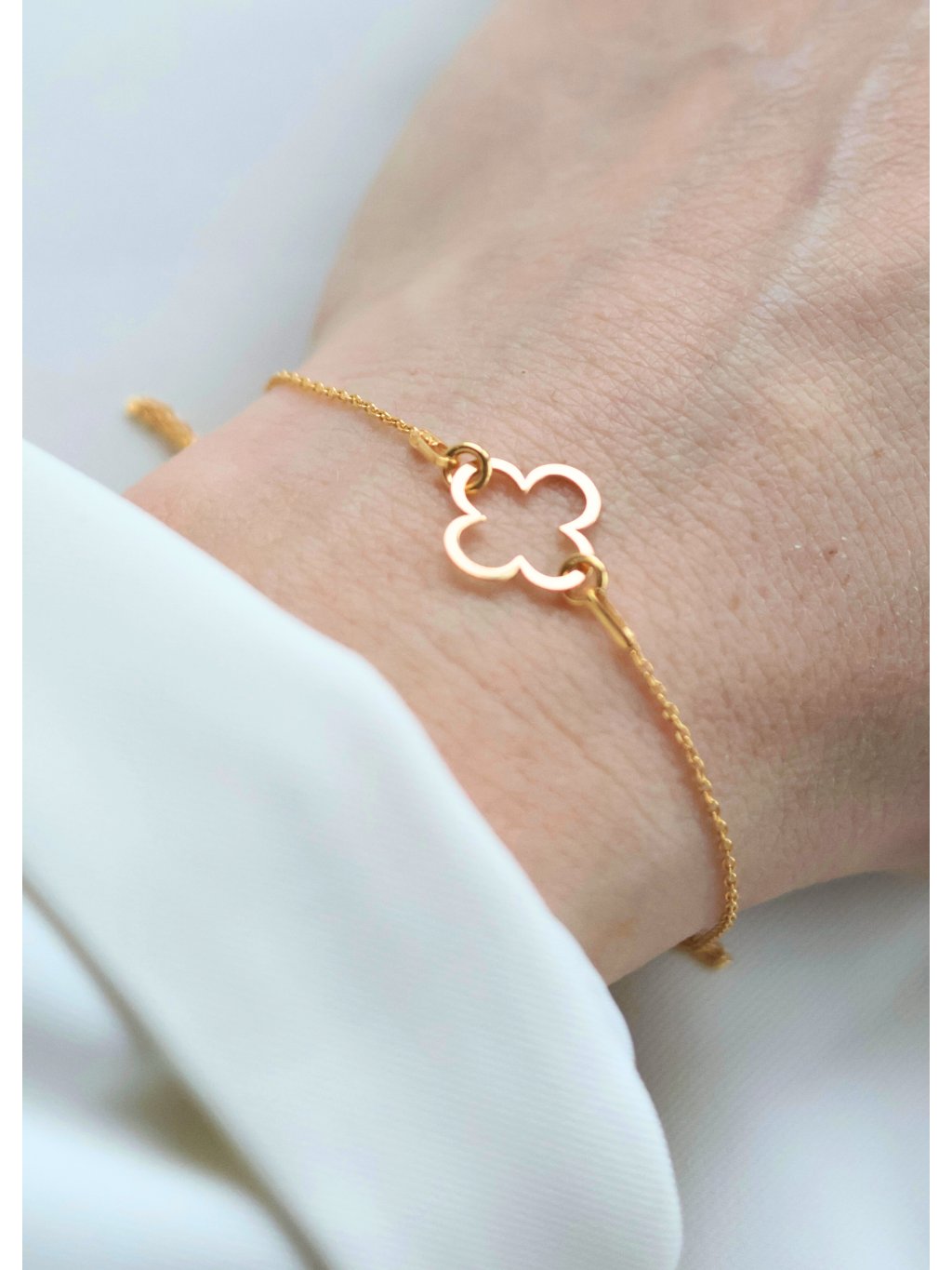 Podtrhněte svou ženskost a výjimečnost s naším náramkem Clover. Jemný a sofistikovaný náramek , který zdobí přívěsek ve tvaru čtyřlístku.