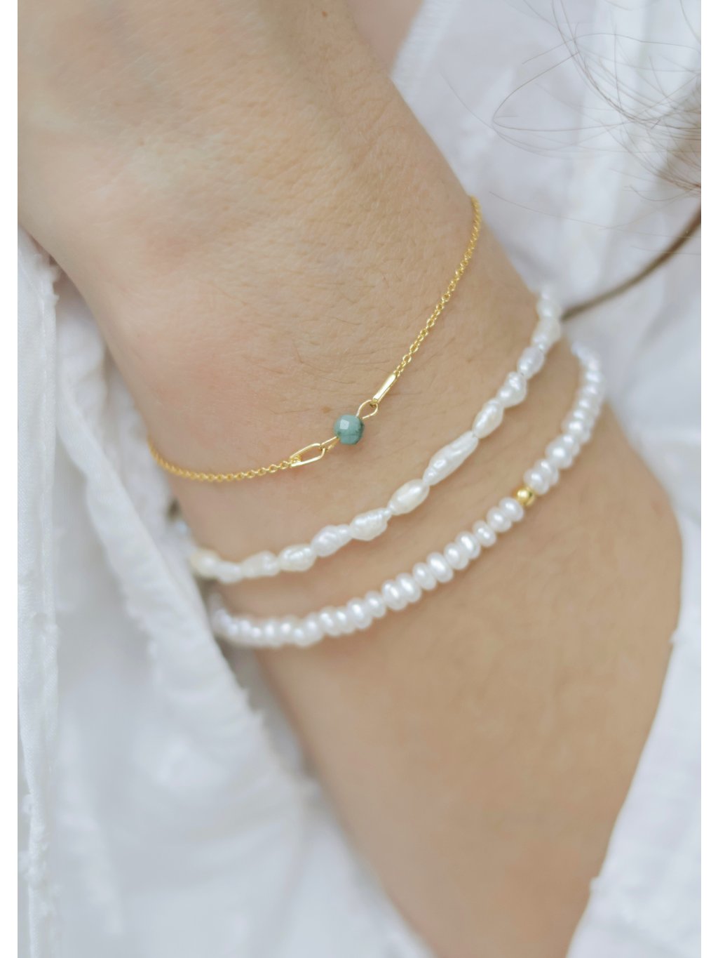 | Detail | Pravé sladkovodní perly: 4x6 mm Prodlužující řetízek (až o 3 cm) součástí náramku Materiál: Stříbro Ag 925, pozlacení 24k zlatem Bez niklu – šperky vhodné i pro citlivou pokožku |