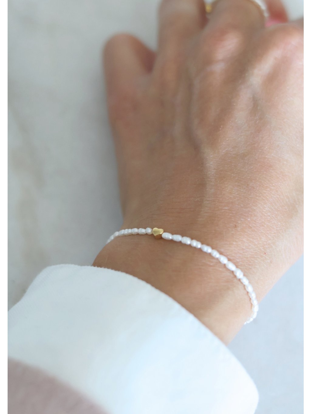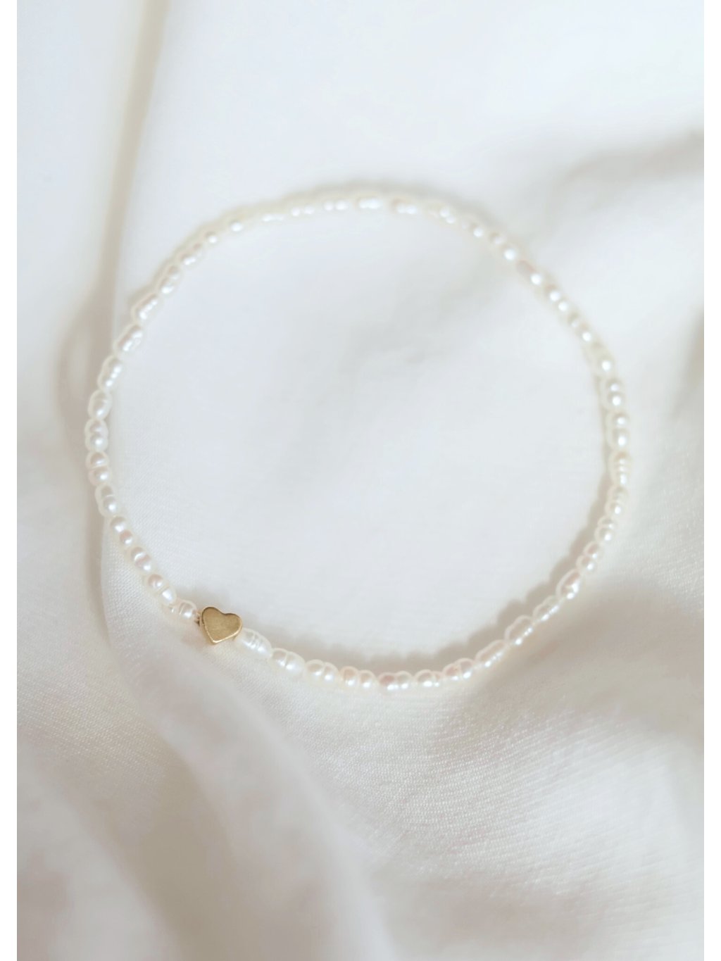 Podtrhněte svou ženskost a výjimečnost s naším náramkem Minimal heart vyrobeným z říčních perel. Jemný a sofistikovaný náramek zdobí pravé říční perly a minimalistické srdíčko.