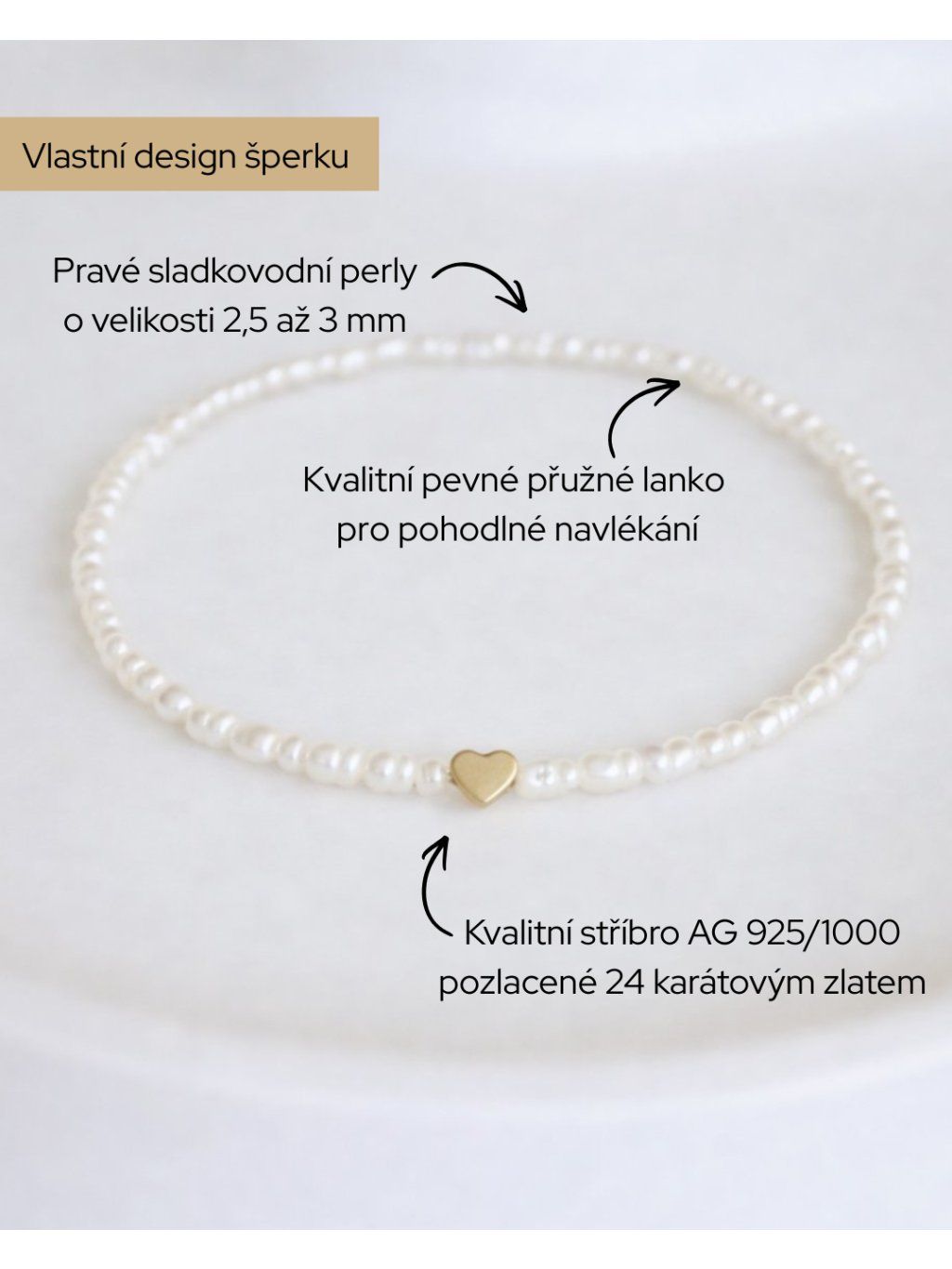 Podtrhněte svou ženskost a výjimečnost s naším náramkem Minimal Heart vyrobeným z pravých říčních perel. Jemný a sofistikovaný náramek zdobí pravé říční perly a minimalistické srdíčko. Šperk je zabalený v dárkové krabičce.