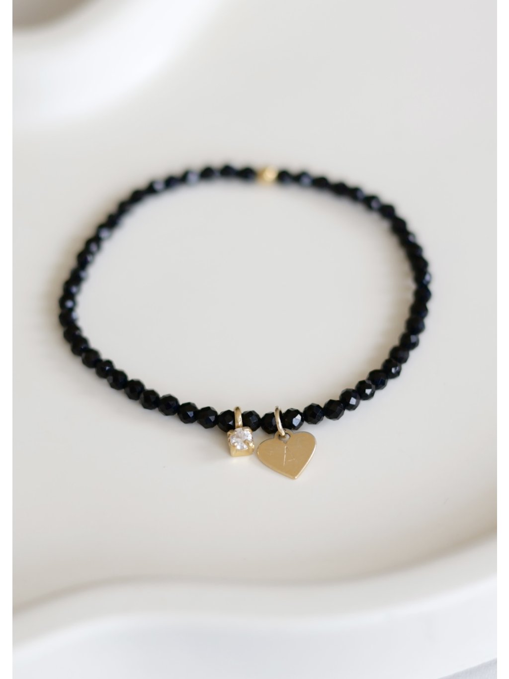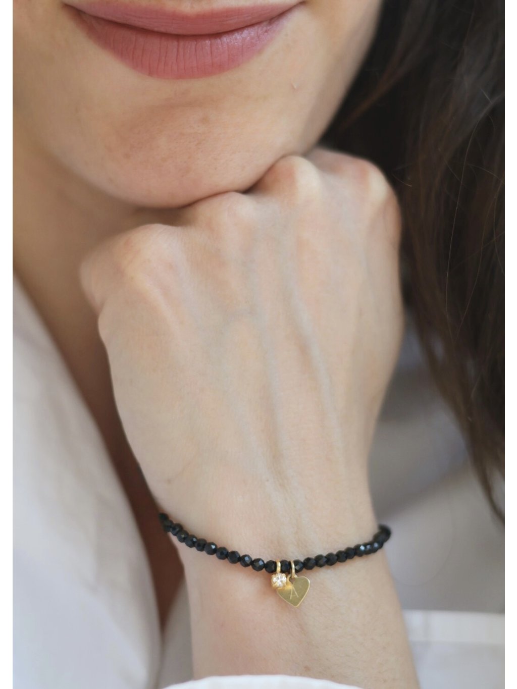 Překrásný náramek z minerálního kamene Spinel, který zdobí jedinečný iniciál a zirkon. Tento náramek s krásným osobním srdíčkem se stane vaším talismanem. Náramek, který vypráví váš příběh. Je to ideální dárek, který potěší srdce každé ženy.