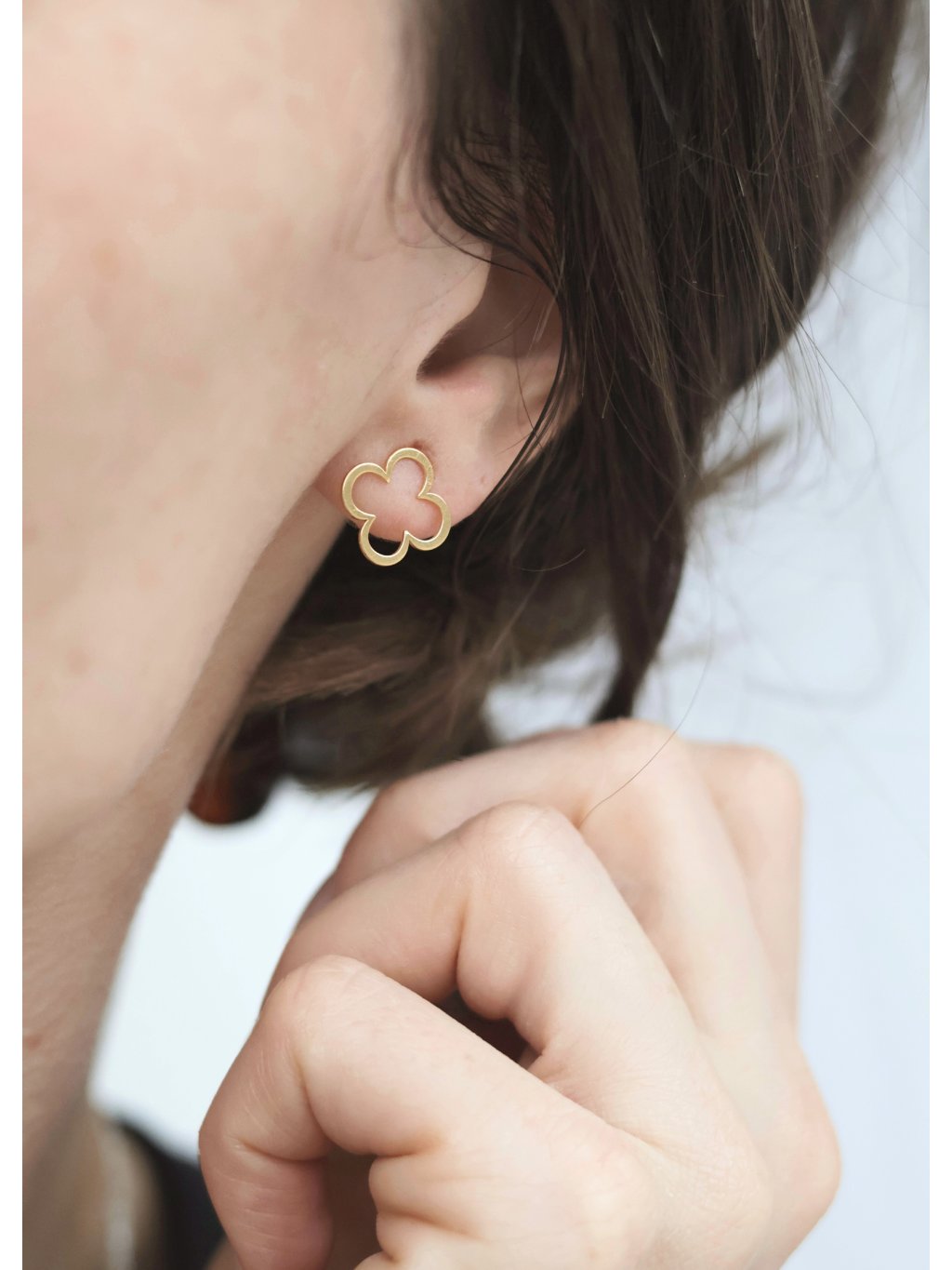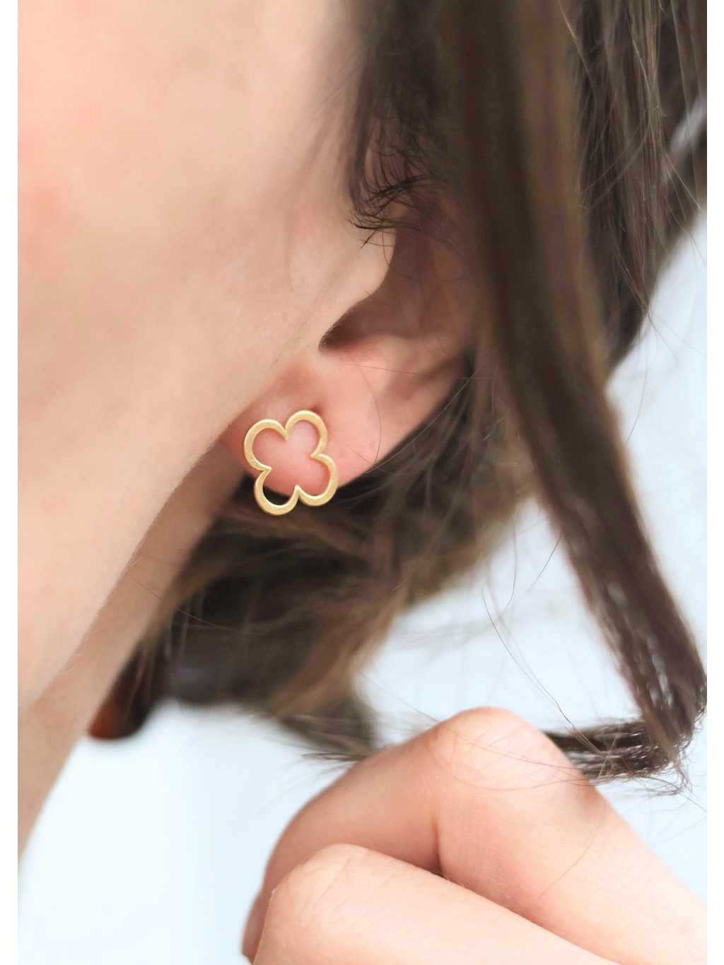 Náušnice Clover ve tvaru čtyřlístku jsou ze stříbra AG925 a zlacené jemným 24Kzlatem. Tyto jemné náušnice jsou základním kouskem do vaší šperkovnice.